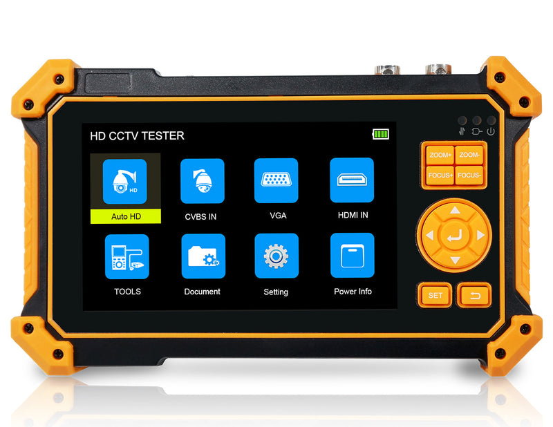 - Portable CCTV tester with 5 inch TFT-LCD Screen(Not touch screen), 800*480 resolution, small body, multi-functions, make your job more easily with this professional CCTV tester