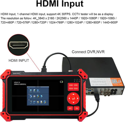 HD-2950 CCTV Camera Tester 8MP TVI CVI AHD CVBS Analog Camera Tester 5inch HDMI&VGA in PTZ Control Audio Test 12V Power Output
