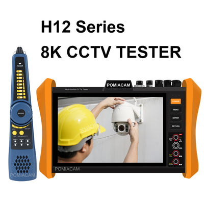 H12 All-in-one CCTV Camera Tester Professional 8 Inch 8K H.265 IP 8MP AHD/TVI/CVI Support POE++, SFP Module IP Camera Tester