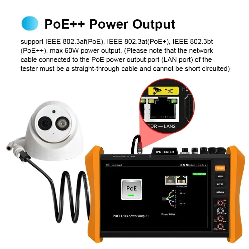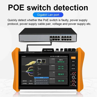 NEW release 8 inch 8K H.265 IP, 8MP AHD/TVI/CVI CCTV Camera Tester support POE++, SFP module