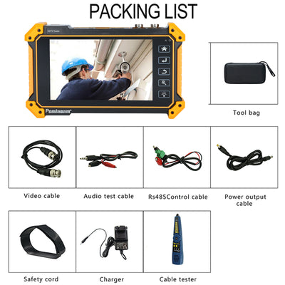 IP Camera Tester with Cable Tracer8MP AHD CVI TVI CVBS IP Camera Test 4K HD Display Video Monitor 5inch IPS Touch Screen IPC Tester Support POE PTZ WiFi RS485 HDMI & VGA