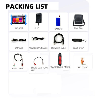 The instrument adopts a open-source Android operation system, mainly used for the installation and maintenance of network monitoring cameras, analog video monitor cameras and other security monitoring equipment, the instrument adopts a 7-inch HD IPS full view display screen, can clearly display the IP and analog camera video images. It is built in a variety of network tools and PoE power output, DC12V/3A power output, cable tracking (optional)and cable testing (optional), etc. It is an essential tool for security monitoring projects and integrated wiring projects.