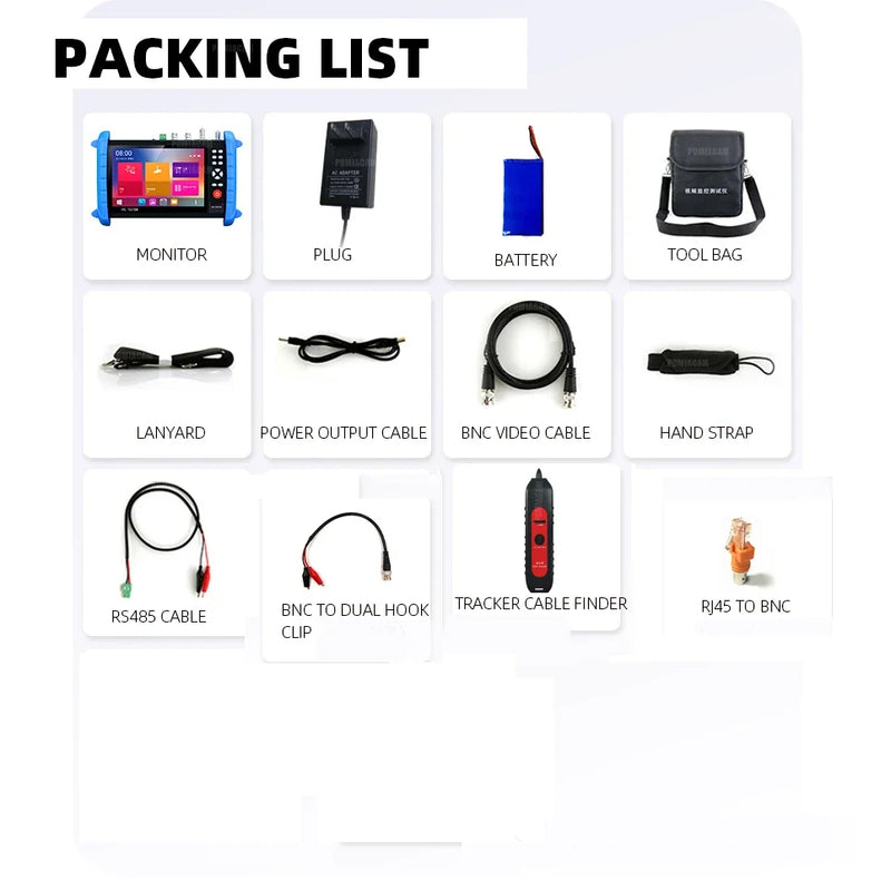IPCX-ACT CCTV Tester H.265 4K 8MP IPC/ TVI /CVI /AHD /CVBS 7 Inch Touch Screen ALL-In-One Multi-Functional IPC Tester Support