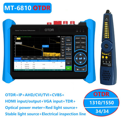 MT-6810: 8K H.265 IP + Analog + AHD + CVI + TVI camera test + 4K HDMI input & output + 2K VGA input+Digital cable tracer + Visual fault locator + Optical power meter+1310/1550 Dual wavelength